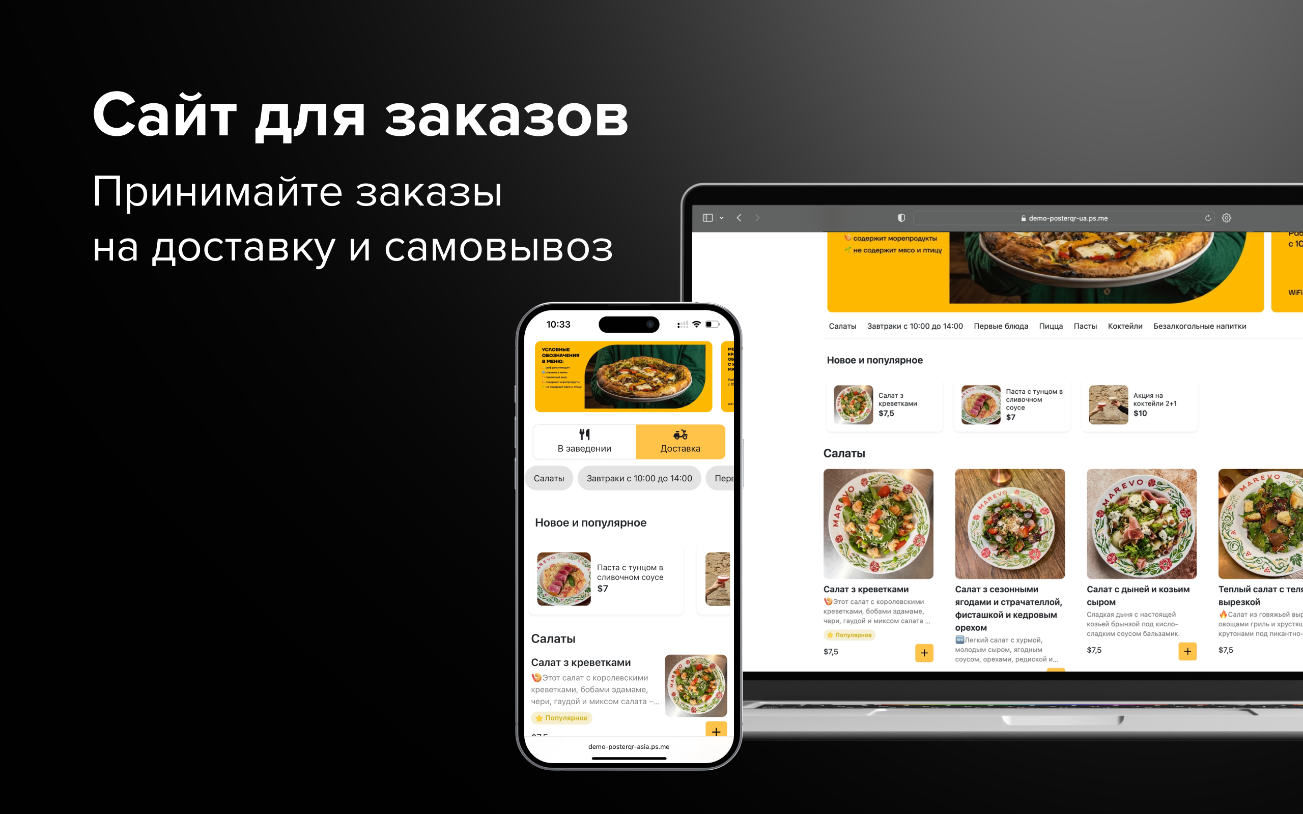 Сайт для доставки и самовывоза на Poster