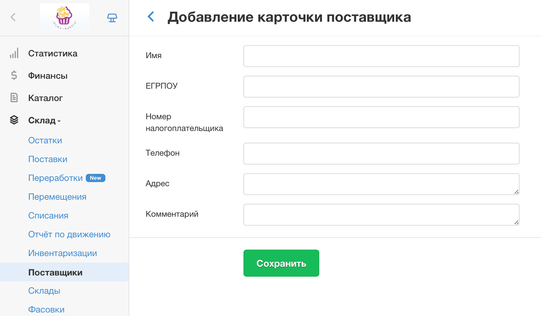 Найдя надёжного поставщика, важно выстроить с ним системную работу — и именно здесь помогает Poster. В системе учета для магазина можно вести базу поставщиков: добавлять контакты, реквизиты и комментарии.